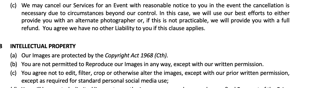 Remember, this template is general legal information only. It’s designed for Australian photographers running standard shoots and events—but if your business involves: